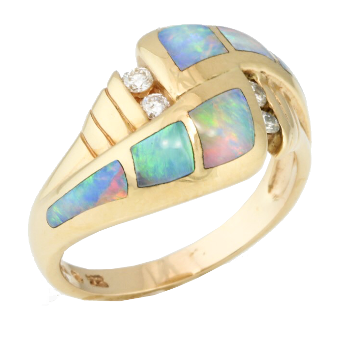 Diamond and opal inlay, free form ring in 14K yellow gold