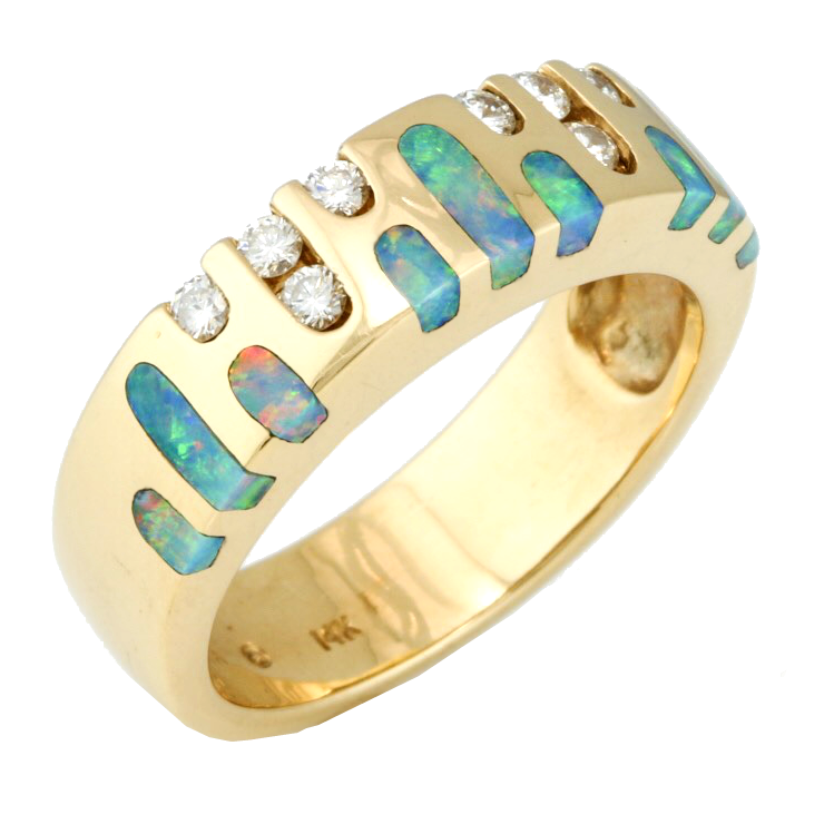 103128 Diamond and opal inlay band in 14K yellow gold $2500 Drop a hint DROP A HINT Name Your Partners Name Phone Your Partners Email Email Your Hint 103128 Designed by: https://sanjewel6.ituldev.com/product/?id=1215 Your Message Enter this code: