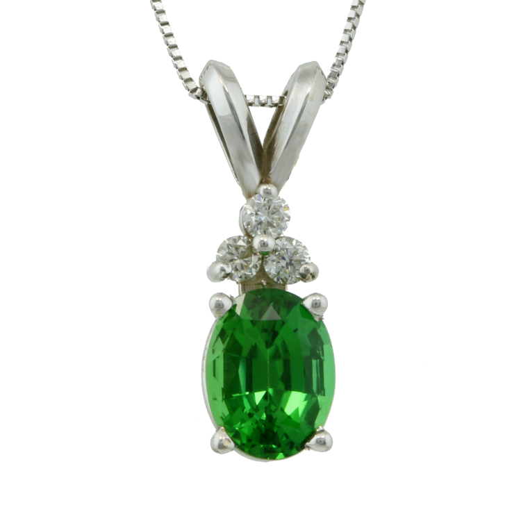 Oval tourmaline pendent with 3 accent diamonds.