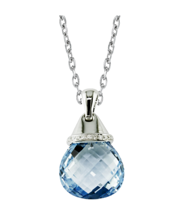 This amazing 13.00ct blue topaz is set in 18k white gold and accented by round brilliant cut white diamonds.