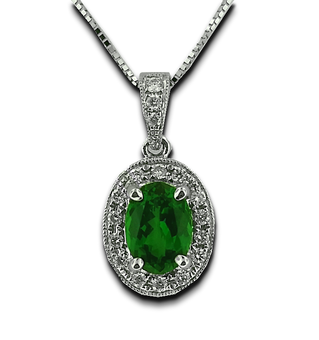 102301 18k white gold pendant showcasing a 1ct oval Tsavorite Garnet framed by .15twt round brilliant cut white diamonds. $1750 Drop a hint DROP A HINT Name Your Partners Name Phone Your Partners Email Email Your Hint 102301 Designed by: https://sanjewel6.ituldev.com/product/?id=840 Your Message Enter this code: