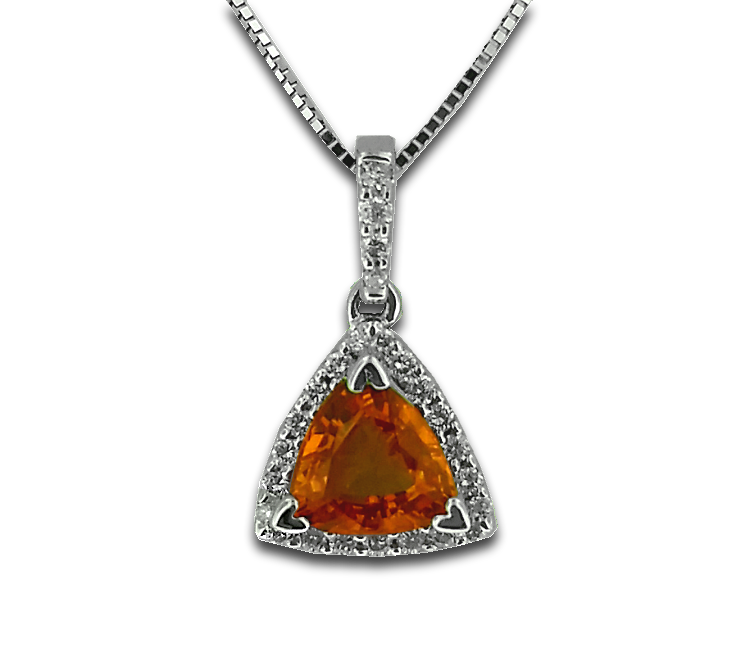 102298 18k white gold pendant featuring a .82ct trillion cut Orange Sapphire framed by .15twt round brilliant cut white diamonds. $750 Drop a hint DROP A HINT Name Your Partners Name Phone Your Partners Email Email Your Hint 102298 Designed by: https://sanjewel6.ituldev.com/product/?id=876 Your Message Enter this code: