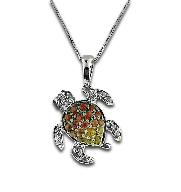 102343 14k white gold multi-color Sapphire turtle pendant . $450 Drop a hint DROP A HINT Name Your Partners Name Phone Your Partners Email Email Your Hint 102343 Designed by: https://sanjewel6.ituldev.com/product/?id=880 Your Message Enter this code: