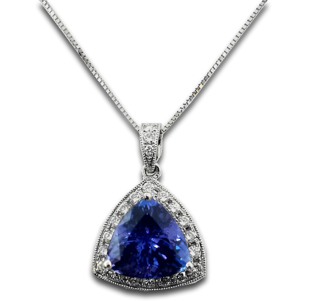 102306 This amazing pendant is crafted in 18k white gold and features a stunning 2.93ct deep Violet Blue Tanzanite with a diamond halo and diamond bail accented by a milgrain beaded edge. $4675 Drop a hint DROP A HINT Name Your Partners Name Phone Your Partners Email Email Your Hint 102306 Designed by: https://sanjewel6.ituldev.com/product/?id=899 Your Message Enter this code: